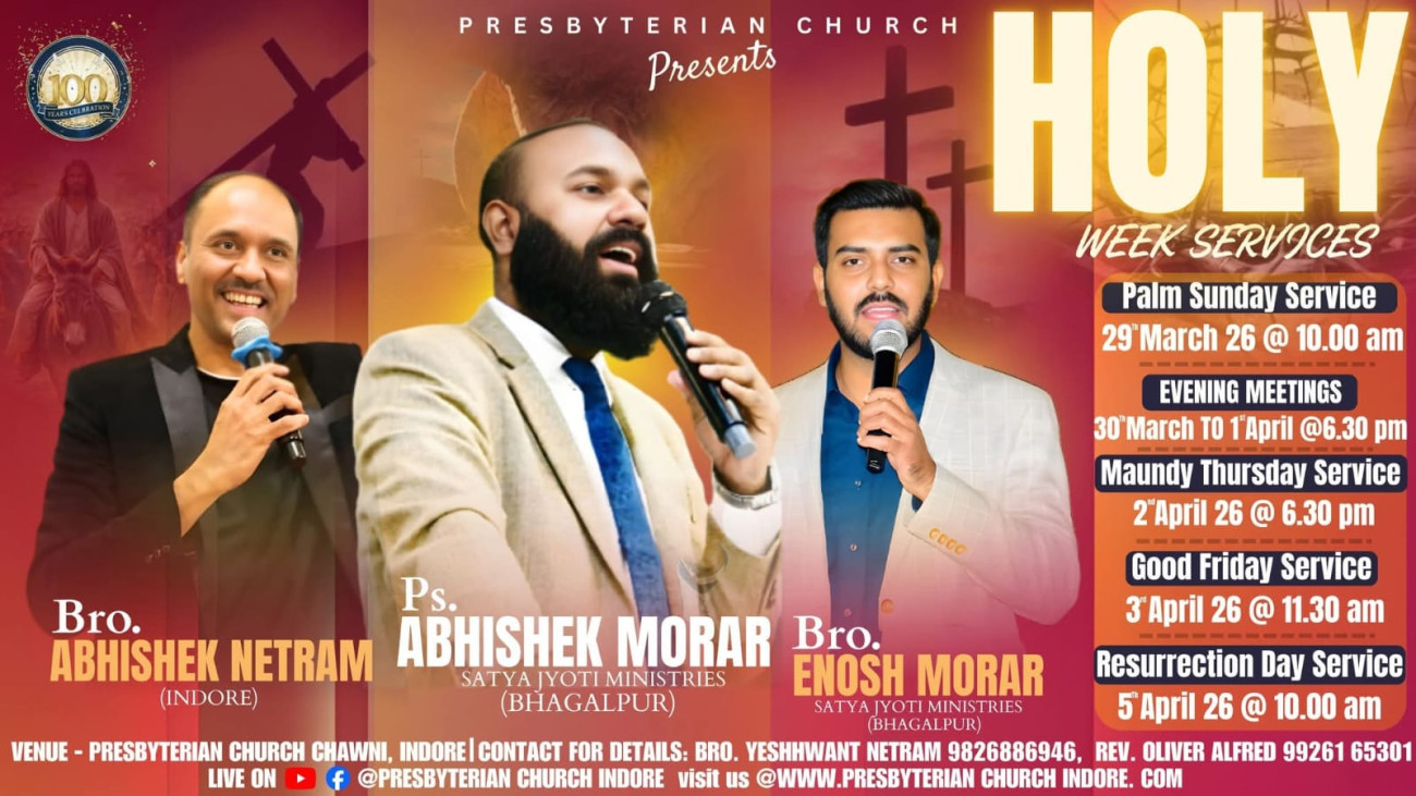 Join us this Sunday, 5th Oct 2025 at 10:00 AM IST for the Holy Communion Service at Presbyterian Church. Led by Rev. Oliver Alfred with worship by Bro. Abhishek Netram and the Presbyterian Choir.